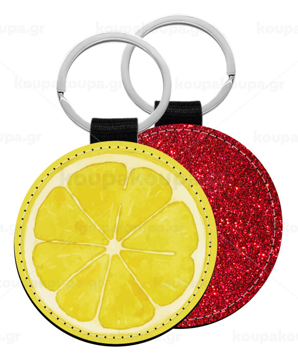 Λεμόνι, Μπρελόκ Δερματίνη, στρογγυλό ΚΟΚΚΙΝΟ (5cm)