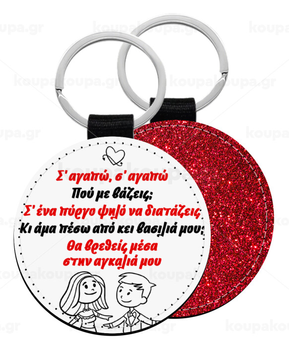 Σ΄ αγαπώ σ΄ αγαπώ που με βάζεις, Μπρελόκ Δερματίνη, στρογγυλό ΚΟΚΚΙΝΟ (5cm)