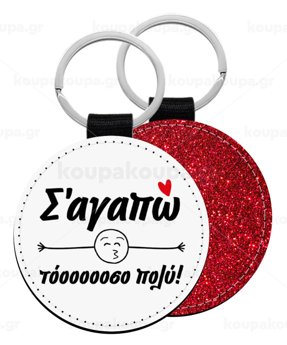 Σ΄ αγαπώ τόοοοοοσο πολύ!!!, Μπρελόκ Δερματίνη, στρογγυλό ΚΟΚΚΙΝΟ (5cm)