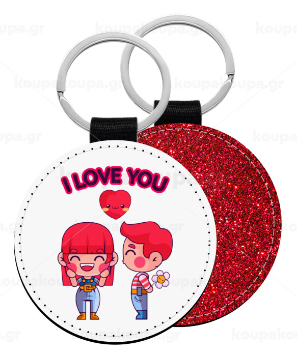 Couple, I love you, Μπρελόκ Δερματίνη, στρογγυλό ΚΟΚΚΙΝΟ (5cm)