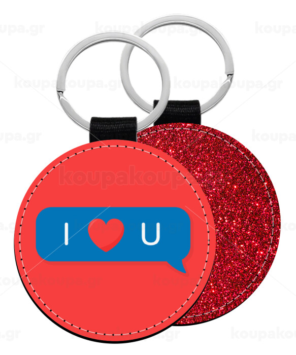 I Love You text message, Μπρελόκ Δερματίνη, στρογγυλό ΚΟΚΚΙΝΟ (5cm)