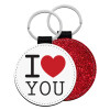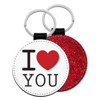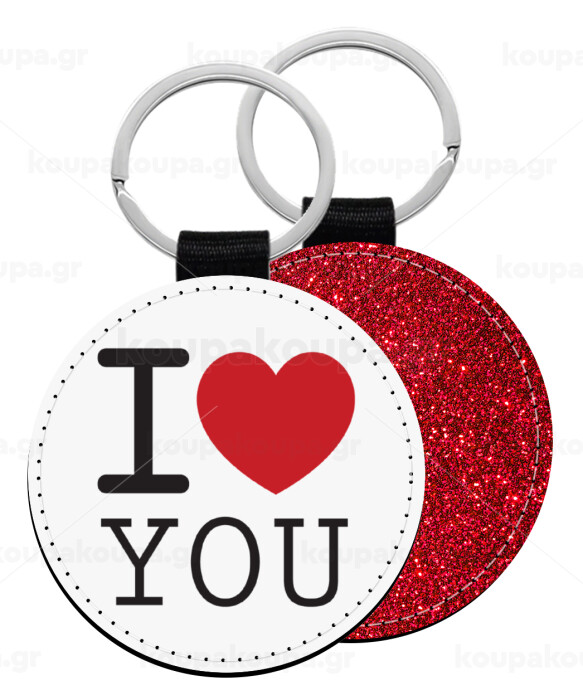 I Love you classic, Μπρελόκ Δερματίνη, στρογγυλό ΚΟΚΚΙΝΟ (5cm)