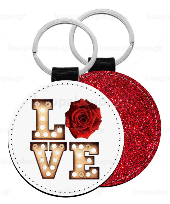 Love lights and roses, Μπρελόκ Δερματίνη, στρογγυλό ΚΟΚΚΙΝΟ (5cm)