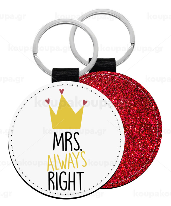 Mrs "Always" right, Μπρελόκ Δερματίνη, στρογγυλό ΚΟΚΚΙΝΟ (5cm)