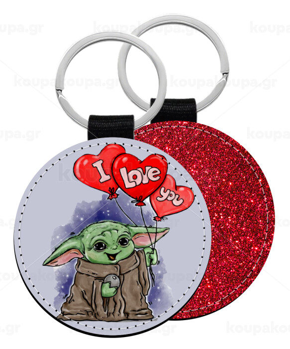 Yoda, i love you, Μπρελόκ Δερματίνη, στρογγυλό ΚΟΚΚΙΝΟ (5cm)
