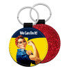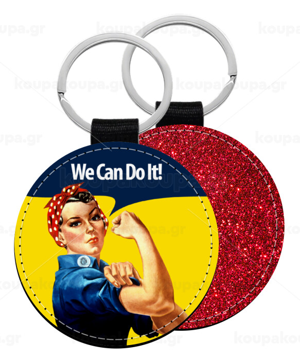 Rosie we can do it!, Μπρελόκ Δερματίνη, στρογγυλό ΚΟΚΚΙΝΟ (5cm)