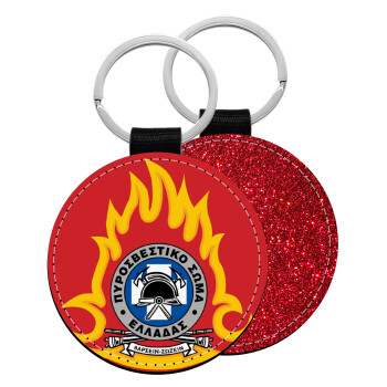 Πυροσβεστικό σώμα Ελλάδος, Μπρελόκ Δερματίνη, στρογγυλό ΚΟΚΚΙΝΟ (5cm)
