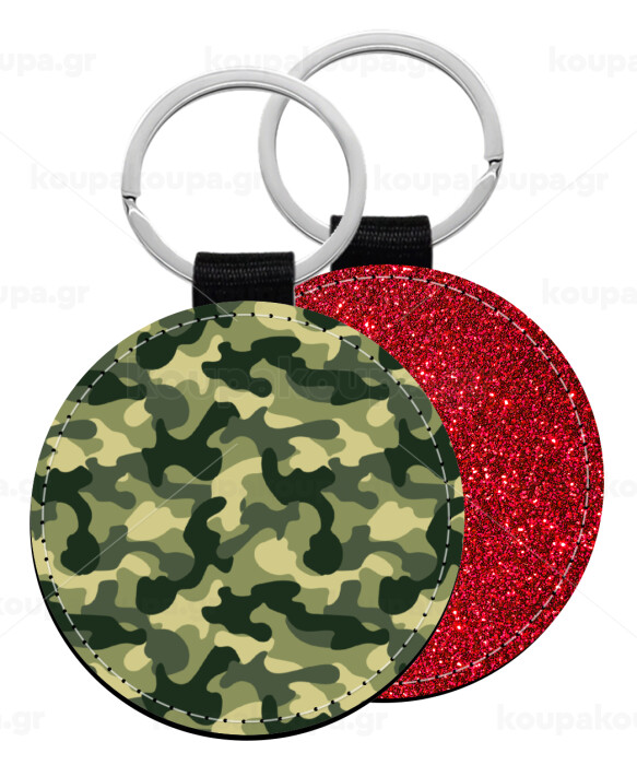 Army, Μπρελόκ Δερματίνη, στρογγυλό ΚΟΚΚΙΝΟ (5cm)