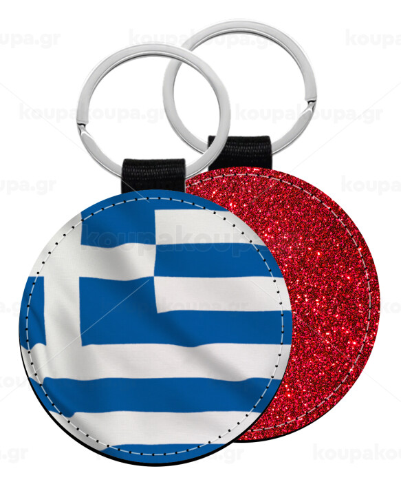 Σημαία Ελλάδας, Μπρελόκ Δερματίνη, στρογγυλό ΚΟΚΚΙΝΟ (5cm)