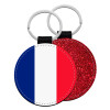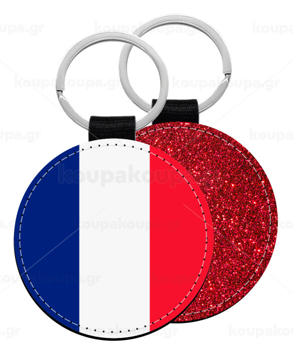 France flag, Μπρελόκ Δερματίνη, στρογγυλό ΚΟΚΚΙΝΟ (5cm)