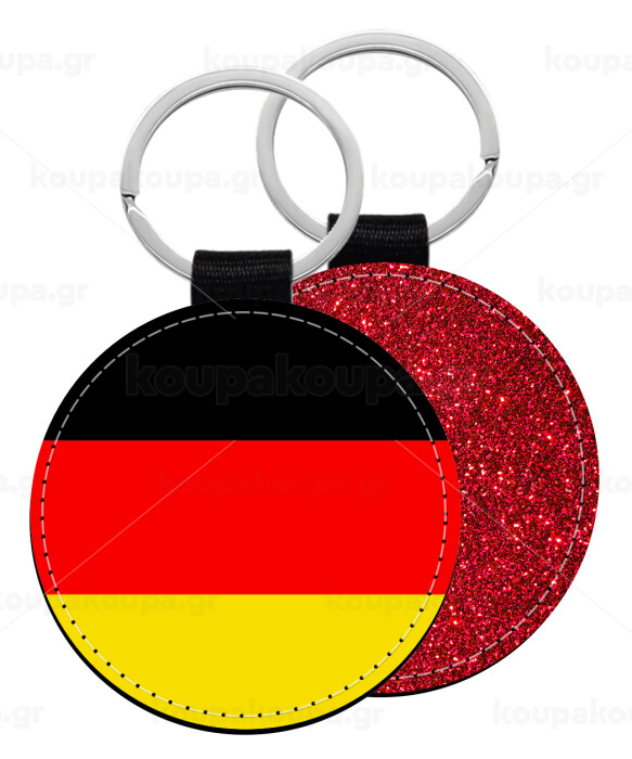Germany flag, Μπρελόκ Δερματίνη, στρογγυλό ΚΟΚΚΙΝΟ (5cm)