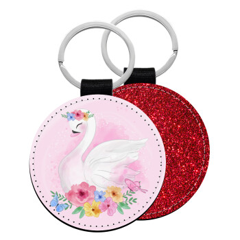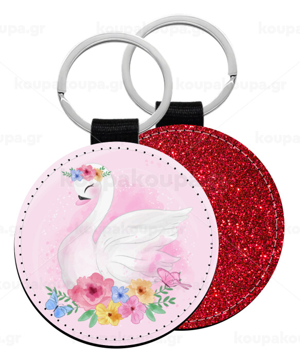 Λευκός κύκνος, Μπρελόκ Δερματίνη, στρογγυλό ΚΟΚΚΙΝΟ (5cm)