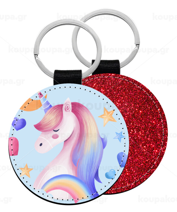 Μονόκερος, Μπρελόκ Δερματίνη, στρογγυλό ΚΟΚΚΙΝΟ (5cm)