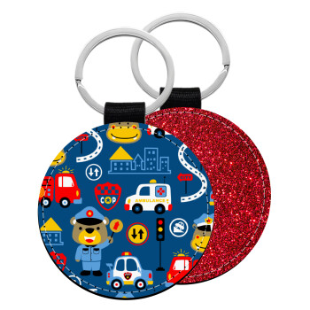Rescue team cartoon, Μπρελόκ Δερματίνη, στρογγυλό ΚΟΚΚΙΝΟ (5cm)