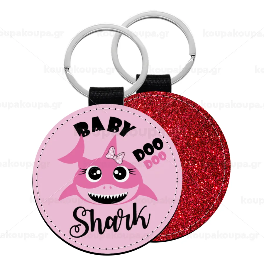 Baby Shark (girl), Μπρελόκ Δερματίνη, στρογγυλό ΚΟΚΚΙΝΟ (5cm)