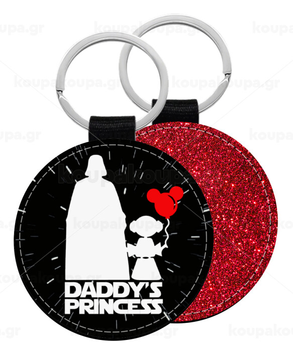 Daddy's princess, Μπρελόκ Δερματίνη, στρογγυλό ΚΟΚΚΙΝΟ (5cm)
