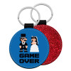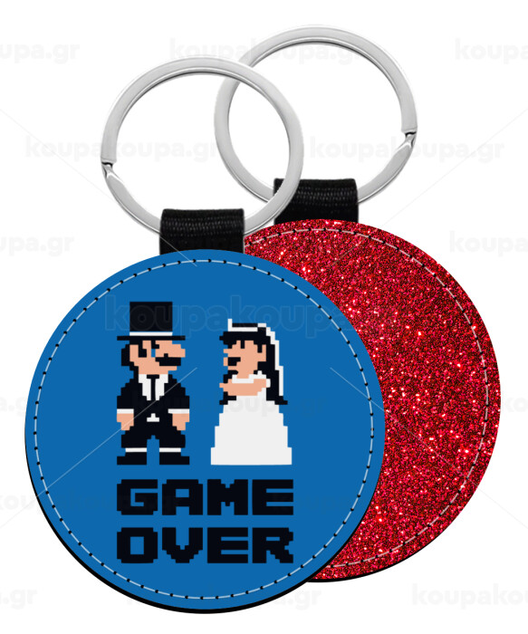 8bit Game Over Couple Wedding, Μπρελόκ Δερματίνη, στρογγυλό ΚΟΚΚΙΝΟ (5cm)