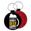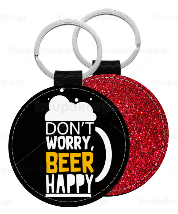 Don't worry BEER Happy, Μπρελόκ Δερματίνη, στρογγυλό ΚΟΚΚΙΝΟ (5cm)