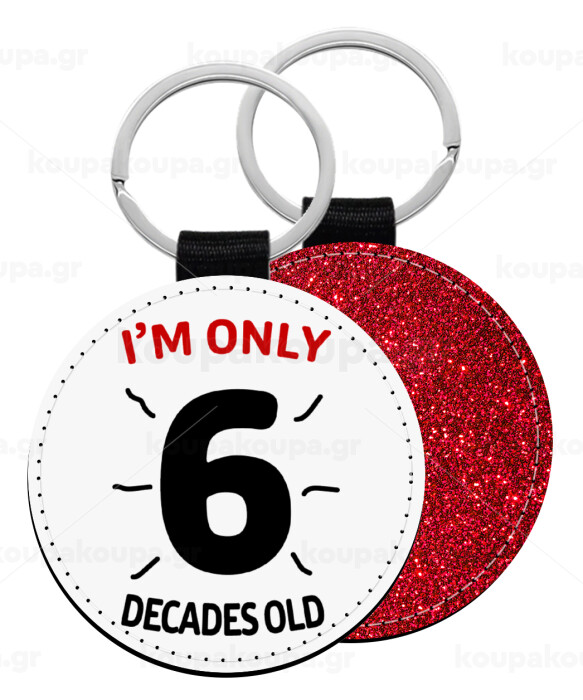I'm only NUMBER decades OLD, Μπρελόκ Δερματίνη, στρογγυλό ΚΟΚΚΙΝΟ (5cm)