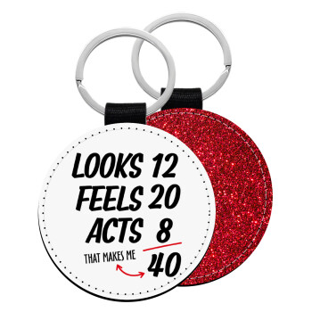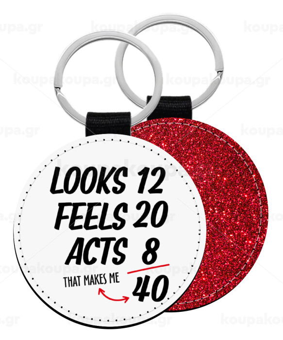 Looks, feels, acts LIKE your AGE, Μπρελόκ Δερματίνη, στρογγυλό ΚΟΚΚΙΝΟ (5cm)