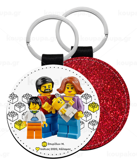 Τύπου Lego family, Μπρελόκ Δερματίνη, στρογγυλό ΚΟΚΚΙΝΟ (5cm)