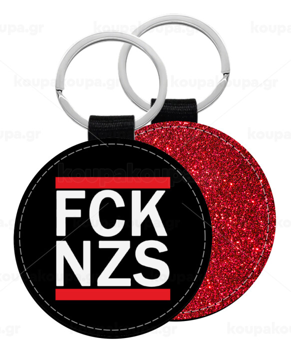 FCK NZS, Μπρελόκ Δερματίνη, στρογγυλό ΚΟΚΚΙΝΟ (5cm)