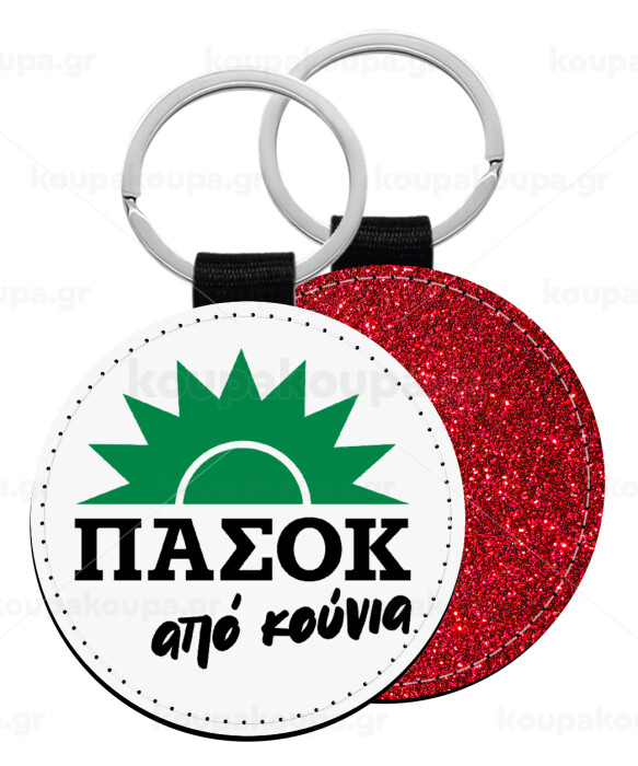 ΠΑΣΟΚ από κούνια, Μπρελόκ Δερματίνη, στρογγυλό ΚΟΚΚΙΝΟ (5cm)