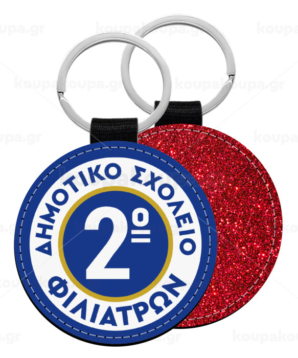 Έμβλημα Σχολικό μπλε κλασική, Μπρελόκ Δερματίνη, στρογγυλό ΚΟΚΚΙΝΟ (5cm)