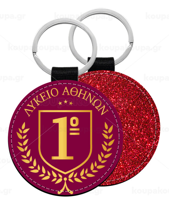 Έμβλημα Σχολικό μπορντό, Μπρελόκ Δερματίνη, στρογγυλό ΚΟΚΚΙΝΟ (5cm)