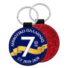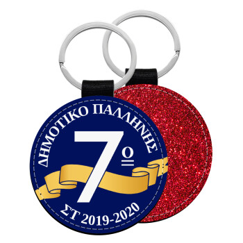 Σχολική μπλε με κορδέλα, Μπρελόκ Δερματίνη, στρογγυλό ΚΟΚΚΙΝΟ (5cm)