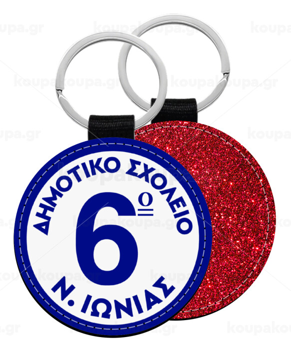 Σχολικό σήμα κλασικό μπλε, Μπρελόκ Δερματίνη, στρογγυλό ΚΟΚΚΙΝΟ (5cm)