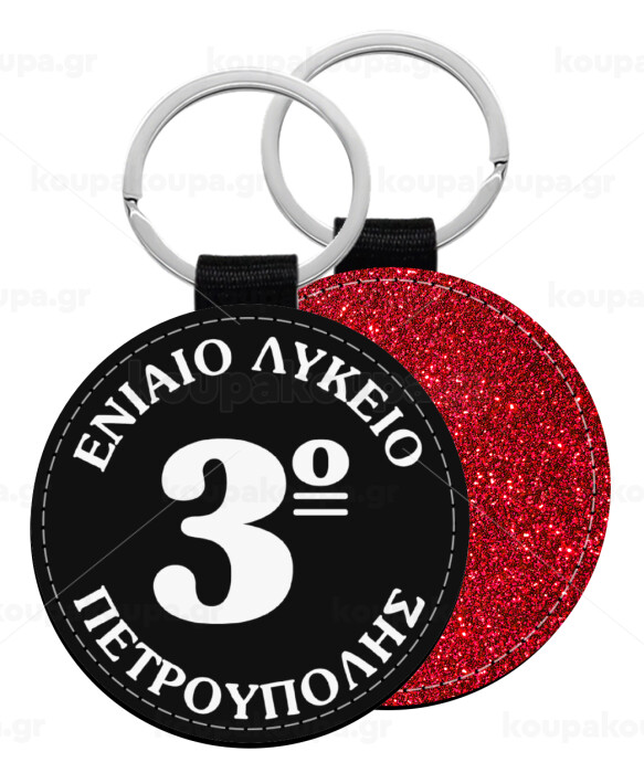 Mπρελόκ από δερματίνη με glitter στην μία πλευρά και στην άλλη δερματίνη μεγάλης αντοχής. Κρίκος ασφάλειας για τα κλειδιά.