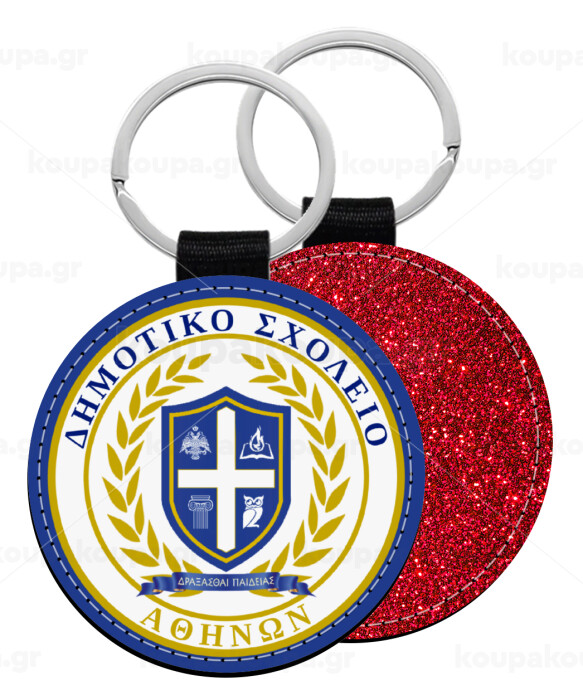 Σχολικό σήμα, Μπρελόκ Δερματίνη, στρογγυλό ΚΟΚΚΙΝΟ (5cm)