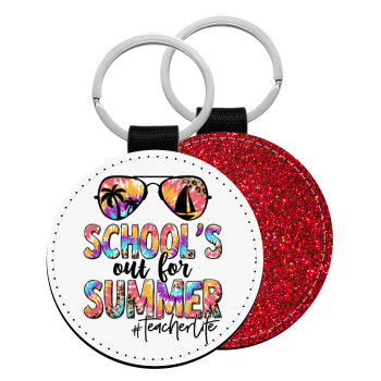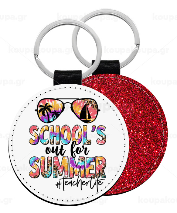 School's Out For Summer Teacher Life, Μπρελόκ Δερματίνη, στρογγυλό ΚΟΚΚΙΝΟ (5cm)