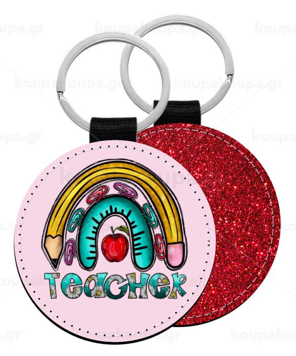 Teacher, Μπρελόκ Δερματίνη, στρογγυλό ΚΟΚΚΙΝΟ (5cm)