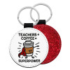 Teacher Coffee Super Power, Μπρελόκ Δερματίνη, στρογγυλό ΚΟΚΚΙΝΟ (5cm)