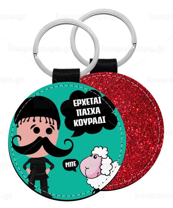 Κρητικός "Έρχεται Πάσχα κουράδι", Μπρελόκ Δερματίνη, στρογγυλό ΚΟΚΚΙΝΟ (5cm)
