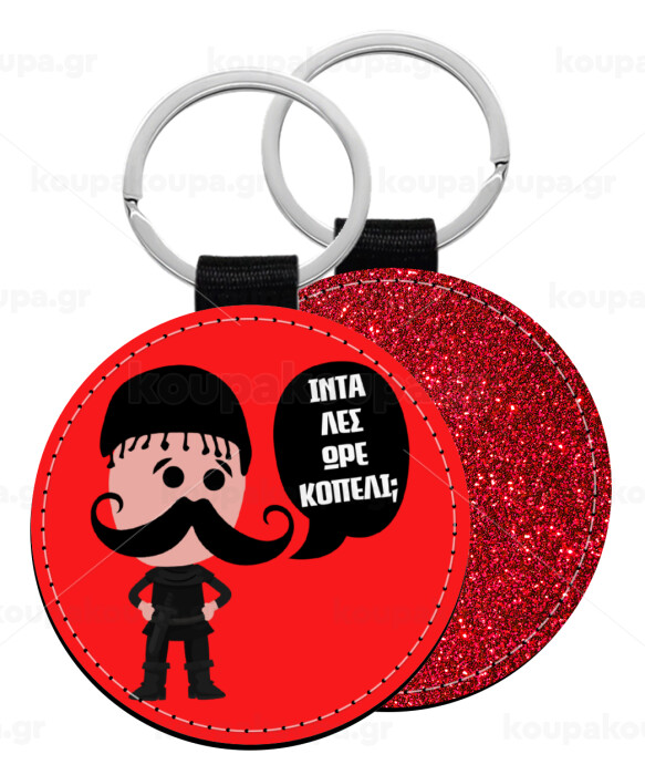 Κρητικός "Ίντα λες ωρέ κοπέλι", Μπρελόκ Δερματίνη, στρογγυλό ΚΟΚΚΙΝΟ (5cm)