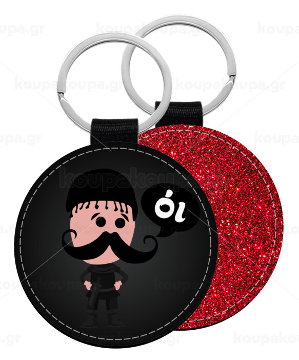 Κρητικός "Οι", Μπρελόκ Δερματίνη, στρογγυλό ΚΟΚΚΙΝΟ (5cm)