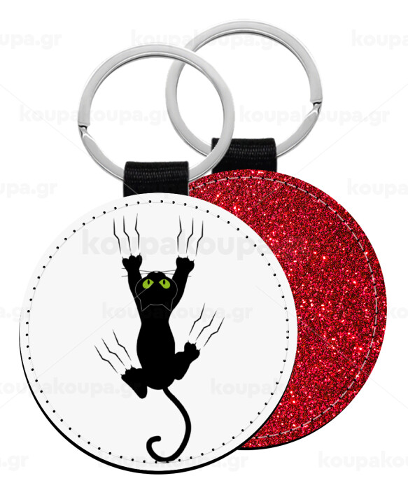 Γατούλα γρατζουνιά, Μπρελόκ Δερματίνη, στρογγυλό ΚΟΚΚΙΝΟ (5cm)