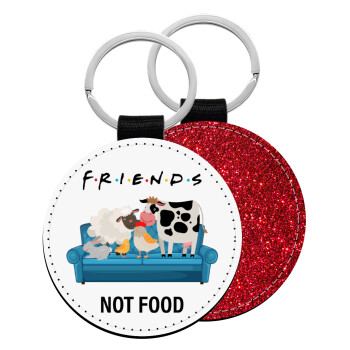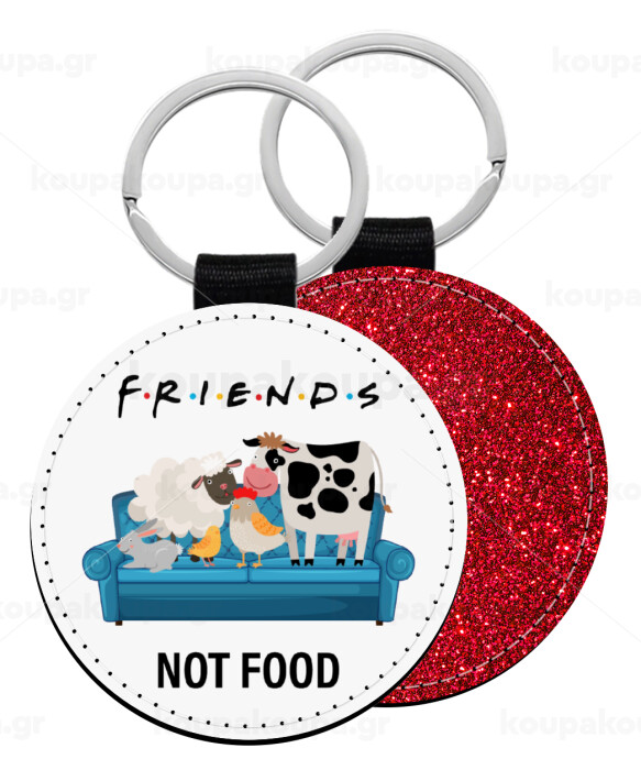 friends, not food, Μπρελόκ Δερματίνη, στρογγυλό ΚΟΚΚΙΝΟ (5cm)