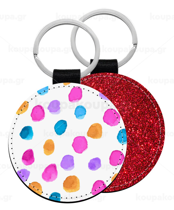 Watercolor dots, Μπρελόκ Δερματίνη, στρογγυλό ΚΟΚΚΙΝΟ (5cm)