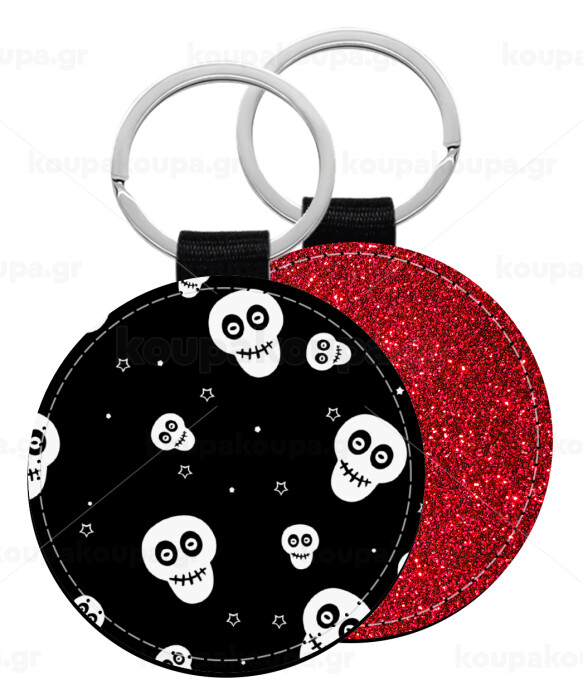 Skull avatar, Μπρελόκ Δερματίνη, στρογγυλό ΚΟΚΚΙΝΟ (5cm)