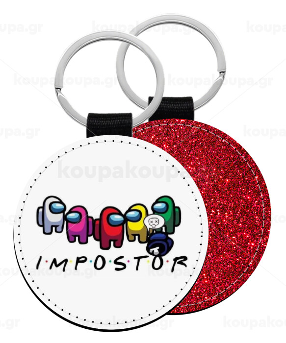 Among US impostor, Μπρελόκ Δερματίνη, στρογγυλό ΚΟΚΚΙΝΟ (5cm)