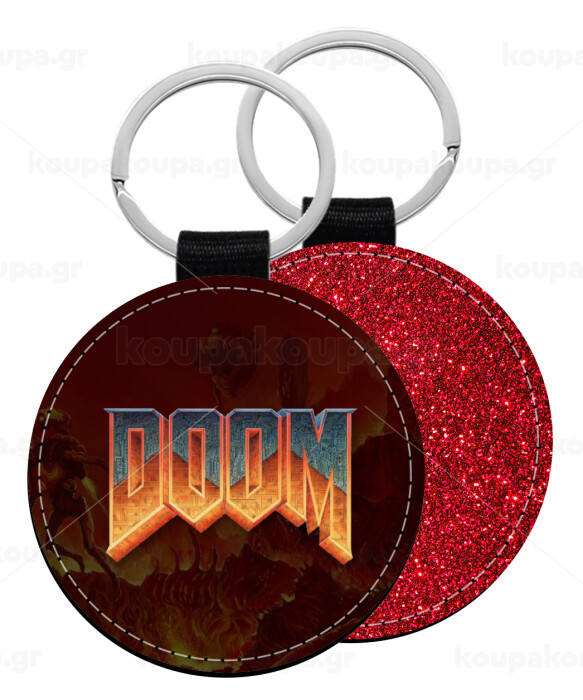 DOOM, Μπρελόκ Δερματίνη, στρογγυλό ΚΟΚΚΙΝΟ (5cm)