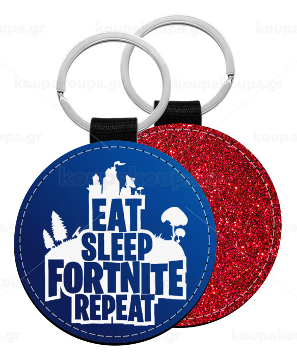 Eat Sleep Fortnite Repeat, Μπρελόκ Δερματίνη, στρογγυλό ΚΟΚΚΙΝΟ (5cm)