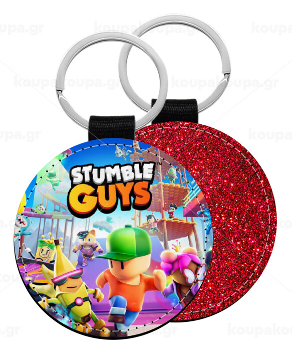 Stumble Guys, Μπρελόκ Δερματίνη, στρογγυλό ΚΟΚΚΙΝΟ (5cm)