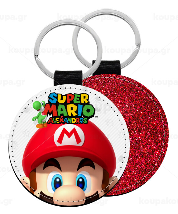 Super mario head, Μπρελόκ Δερματίνη, στρογγυλό ΚΟΚΚΙΝΟ (5cm)