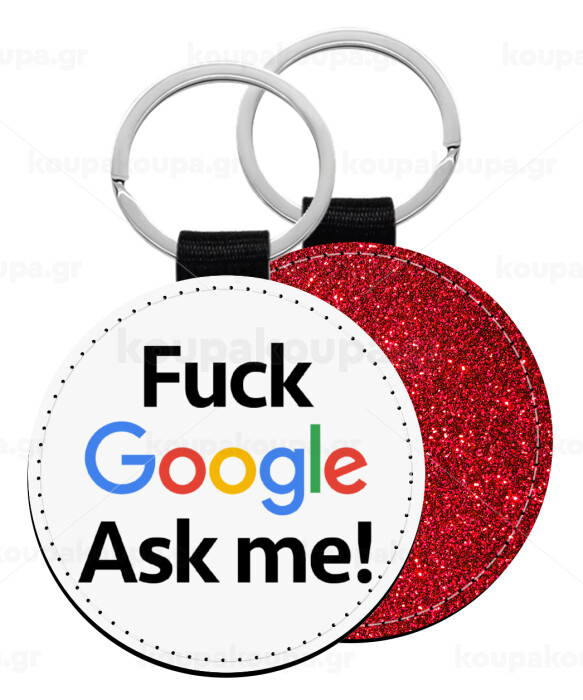 Fuck Google, Ask me!, Μπρελόκ Δερματίνη, στρογγυλό ΚΟΚΚΙΝΟ (5cm)