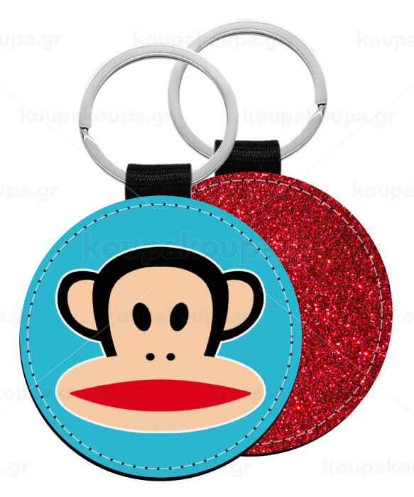 Monkey, Μπρελόκ Δερματίνη, στρογγυλό ΚΟΚΚΙΝΟ (5cm)